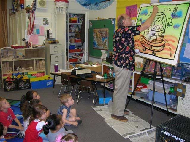 This is a picture from Jon Buller's June 18 visit to The Charter Oak Academy in West Hartford. It's not as easy as it looks to tell a story like this while drawing pictures without getting any ink on your pants.